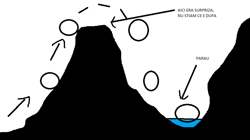 confirm ! am vazut totul perfect, s-a dus si peste cap cu frana pe fata pe culme. Cand am urcat pe culme si am vazut ditamai prapastia de 20 m cu parau jos, lat de 1m, am zis ca sigur s-a ranit.